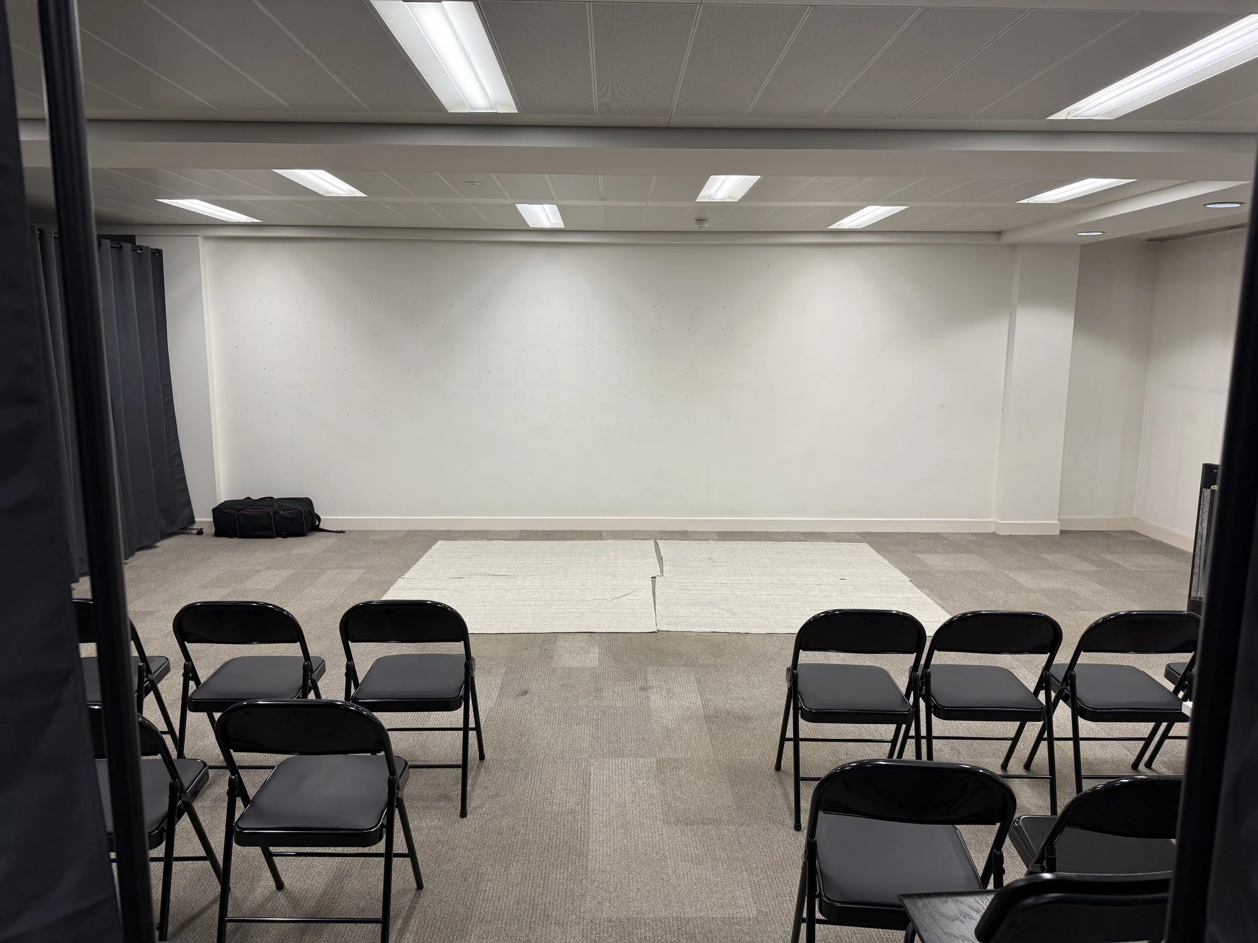 Our space is flexible and can be adapted to fit your needs. Our standard theatre setting offers space measuring 4m by 9m. This can extended for larger rehearsals to 10m by 9m .